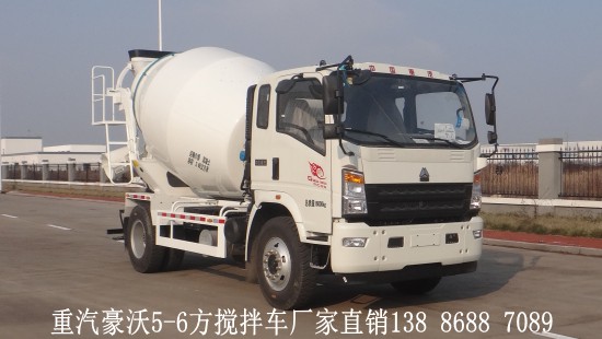 出口重汽豪沃5-6方攪拌車,整車型號為ZZ5167GJBG381CE1混凝土攪拌運輸車,2080mm平頂帶臥駕駛室,MC05.18-50德國曼發(fā)動機,3800軸距,3.2噸前橋,8噸后橋(鼓式)速比4.33,HW90510C變速箱。